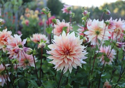 - Dahlias – Exuberant flowers in dazzling shapes and colors.